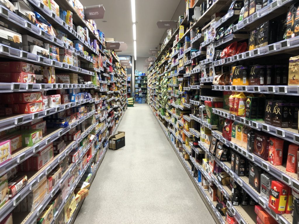 Compras de supermercado na França.
